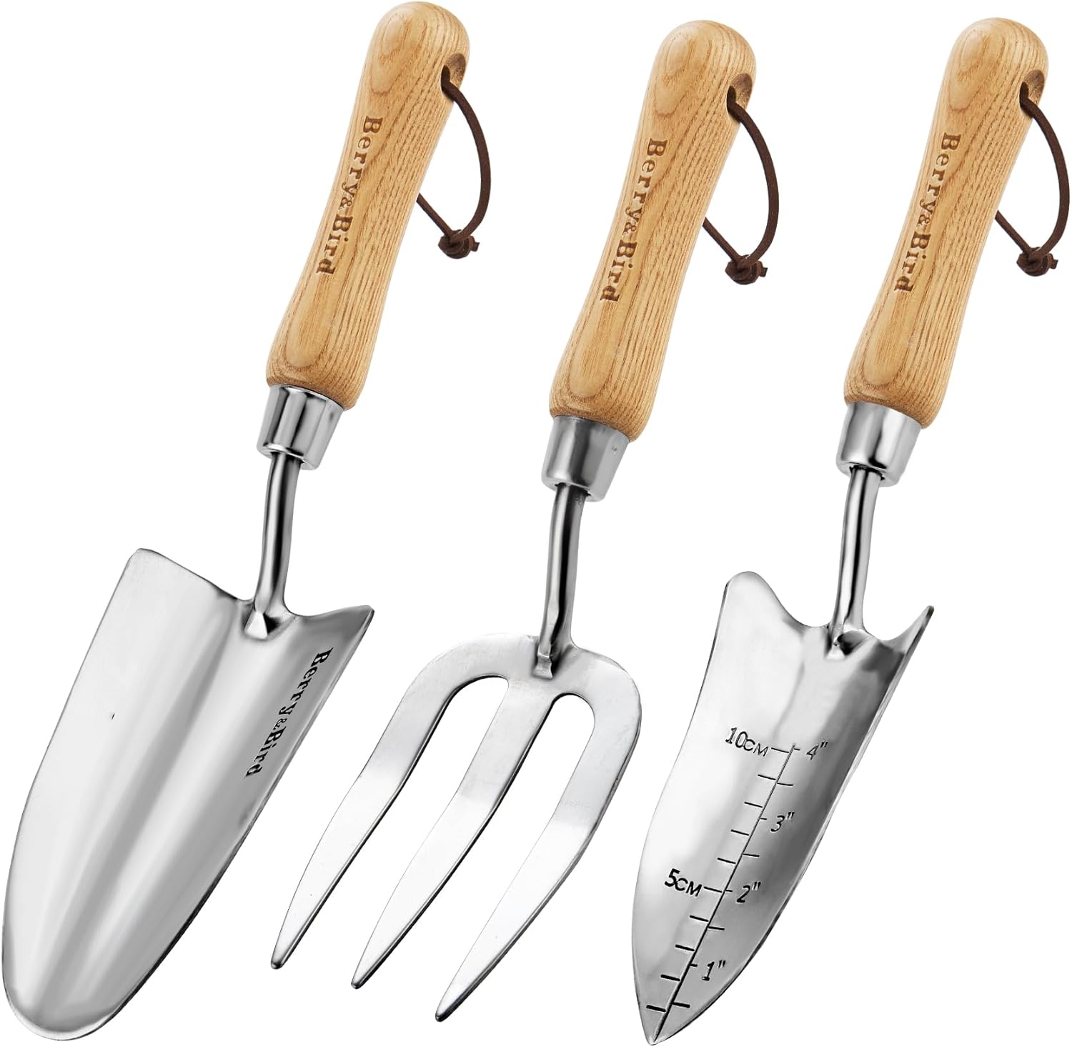 Tool Set- 3PCS Stainless Steel Tool Sets with Wooden Handle Trowel Weeding
